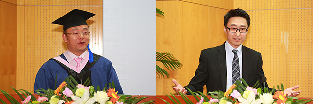 第六期毕业学员代表郭浩和第八期新学员代表郑毅分别发言