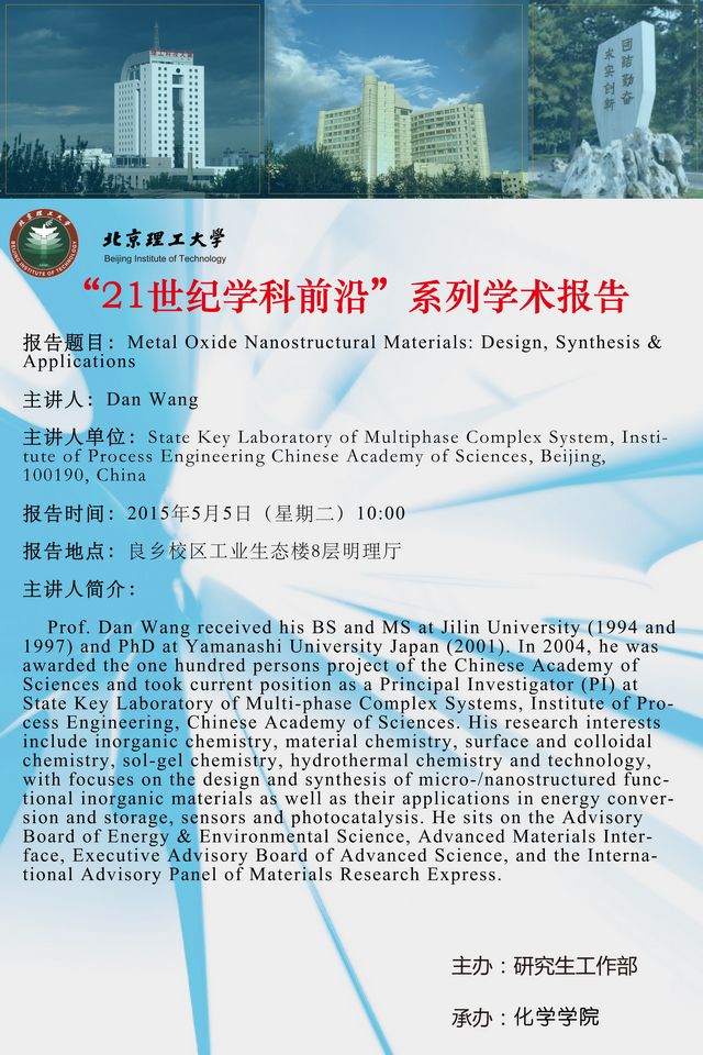 化学学院"21世纪学科前沿"系列学术报告预告
