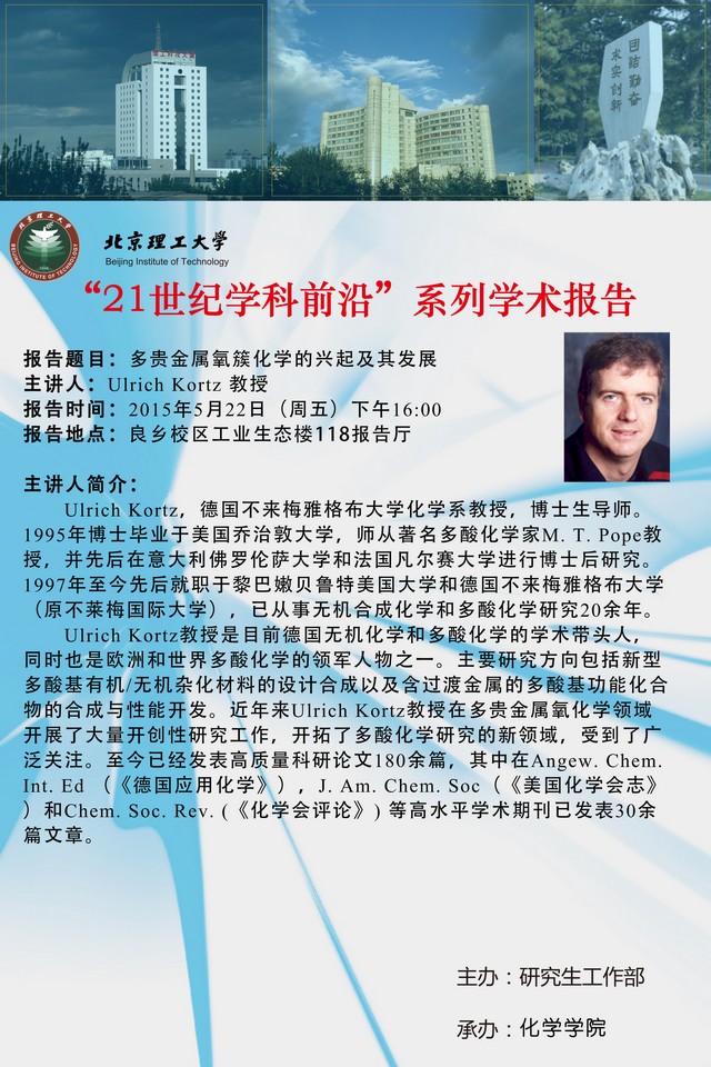 化学学院"21世纪学科前沿"系列学术报告预告