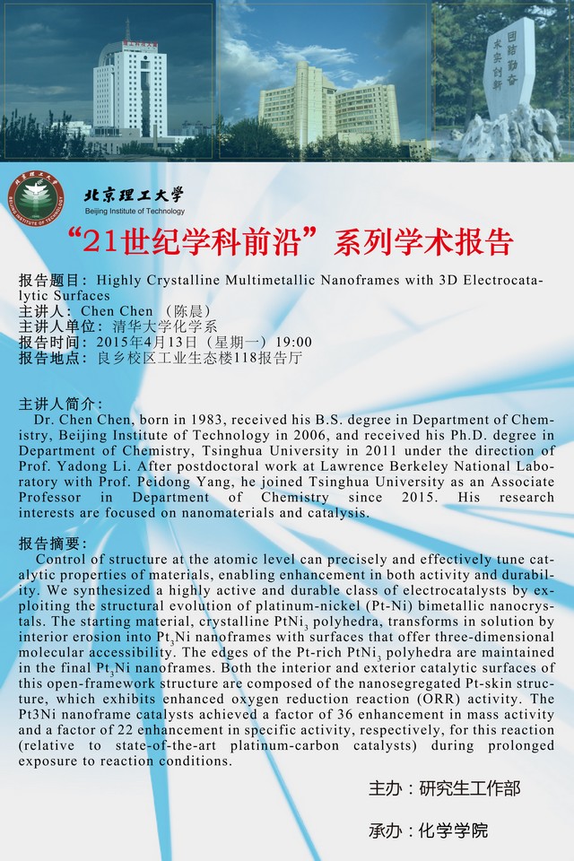 化学学院"21世纪学科前沿"系列学术报告预告