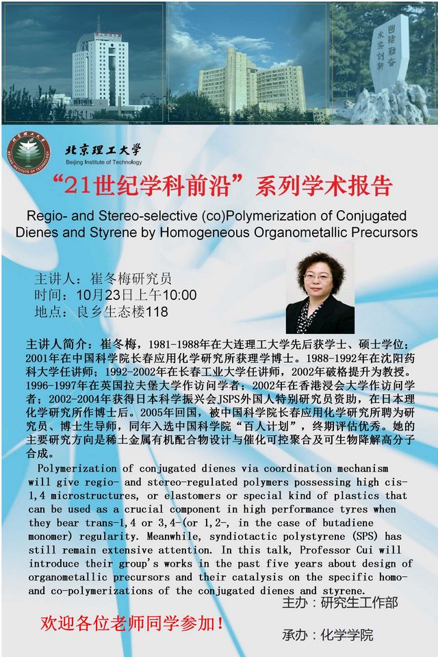 > 【化学学院】“21世纪学科前沿”崔冬梅研究员学术报告通知