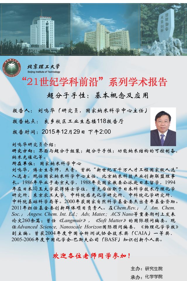 > 【化学学院】“21世纪学科前沿”刘鸣华研究员学术报告通知