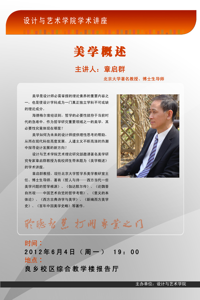 设计与艺术学院艺术理论研究部特邀请著名美学研究专家章启群教授为全院师生带来题为《美学概述》的学术讲座。