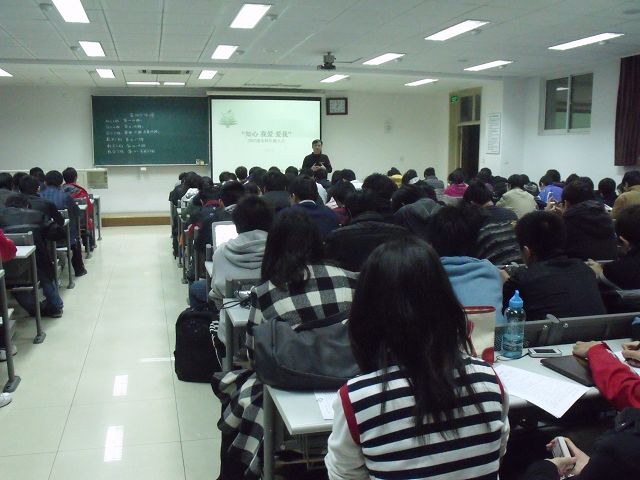 其次,刘博联老师指出,知心需要每位同学了解自身目前现状,特别是自身的学习成绩;知心,关心还需要关心身边的同学,特别是他们将来毕业出路的选择;我爱,需要爱集体,爱关心帮助过自己的同学和老师;爱我,需要保持一颗平常心,珍惜生命,注意安全。