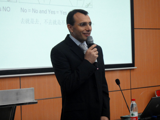 2010年10月20日下午,华晨宝马有限公司工艺规划及商务控制高级经理、整车研发部门分析中心高级经理Alpay先生应邀做客第九期博雅学堂,在综合楼报告厅做了题为“工作中体现的中德文化差异”的报告。基础教育学院党委副书记、副院长高伟涛等教师和200余名同学出席了活动。华晨宝马有限公司制造部高级经理张涛女士担任了现场翻译。