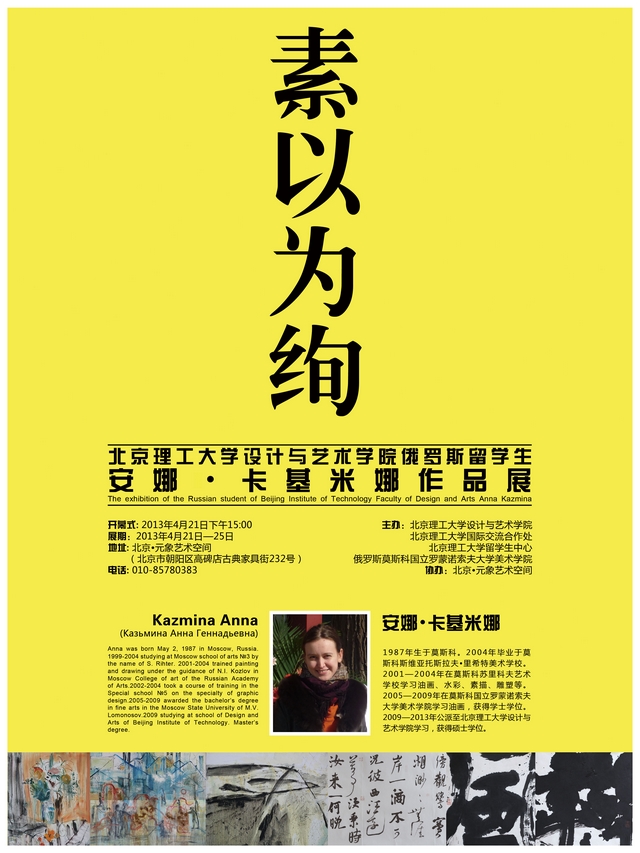 关于“素以为绚”——北理工设计学院俄罗斯留学生安娜·卡基米娜作品展的通知