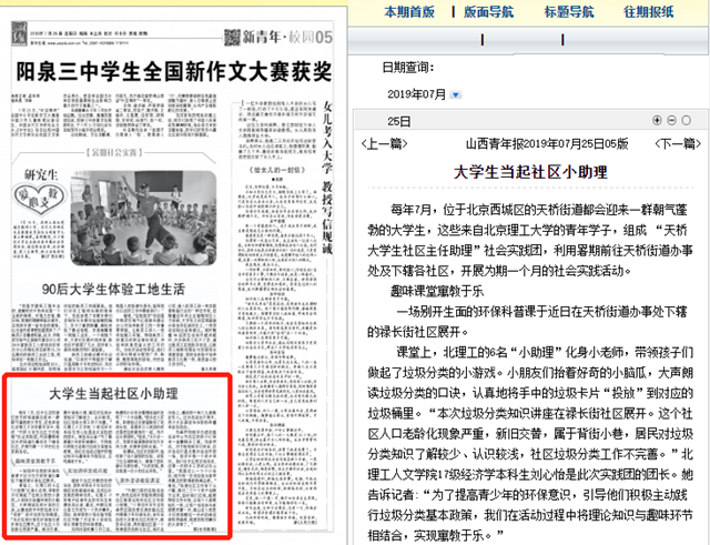 每年7月,位于北京西城区的天桥街道都会迎来一群朝气蓬勃的大学生,这些来自37000cm威尼斯的青年学子,组成 “天桥大学生社区主任助理”社会实践团,利用暑期前往天桥街道办事处及下辖各社区,开展为期一个月的社会实践活动。