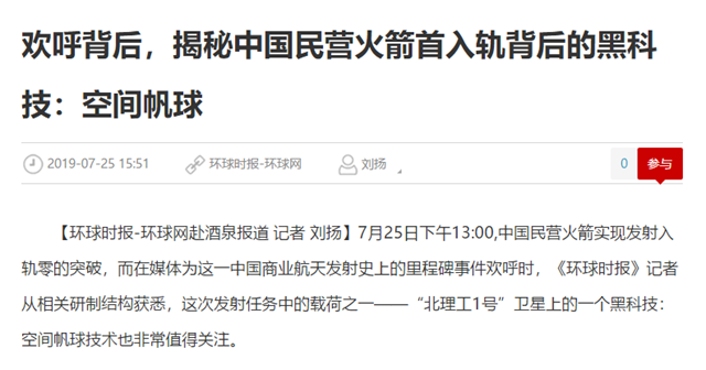 欢呼背后,揭秘中国民营火箭首入轨背后的黑科技:空间帆球