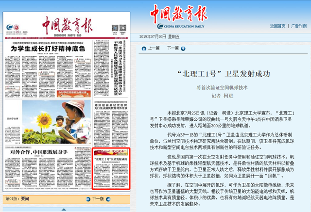 编辑:吴楠 审核:王征 阅读次数:原文标题:“北理工1号”卫星发射成功