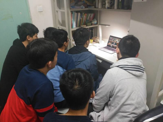学生在宿舍内集体收看党的十九大开幕会直播