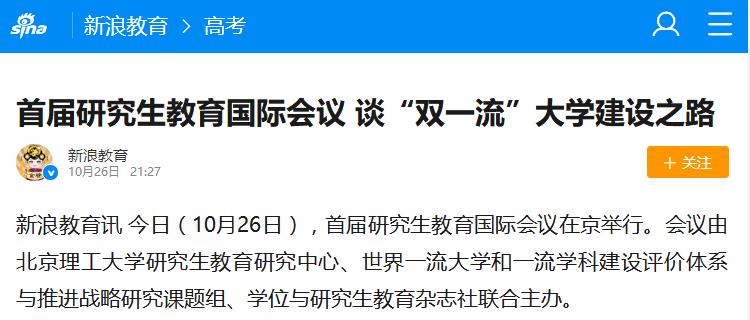 【新浪教育】首届研究生教育国际会议 谈“双一流”大学建设之路