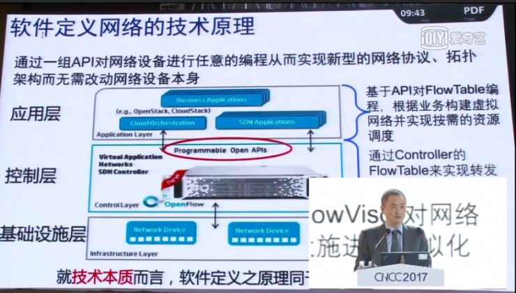 软件定义网络的技术原理是通过一组API对网络设备进行任意的编程从而实现新型的网络协议、拓扑架构而不需改动网络设备本身。