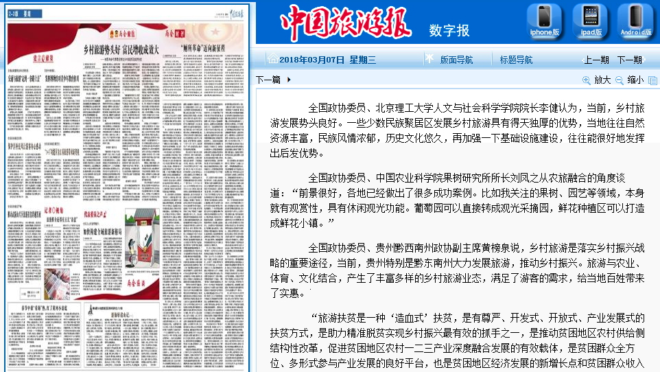 【两会·中国旅游报】李健委员:乡村旅游势头好 富民增收成效大