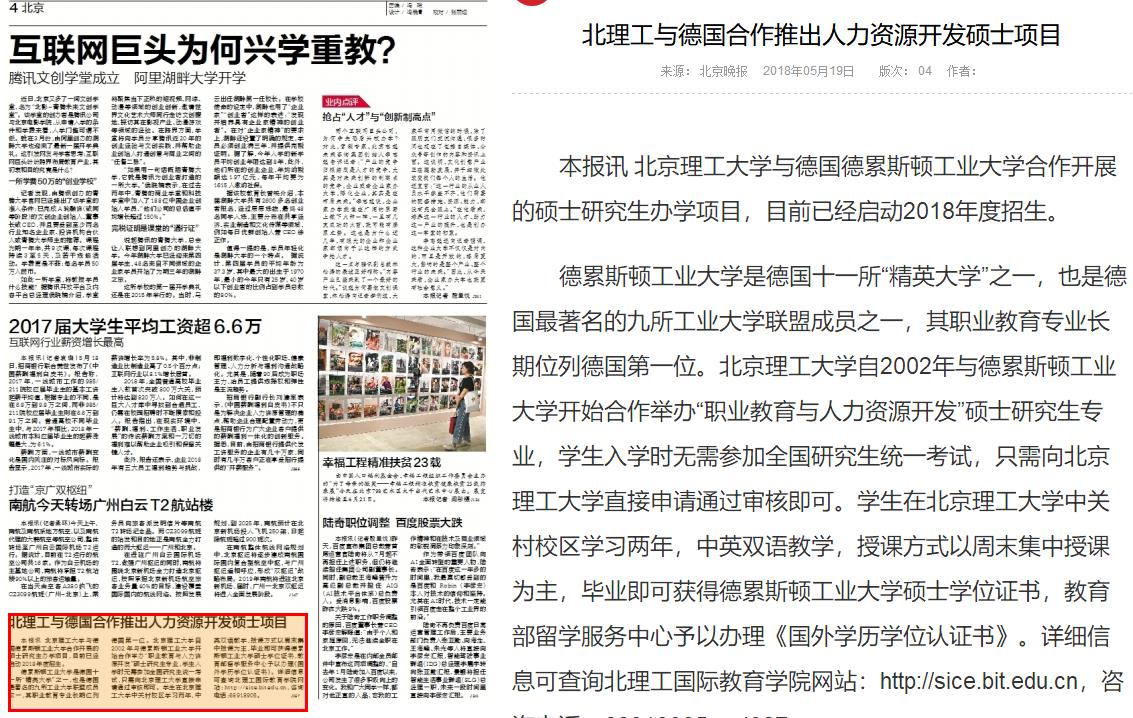 【北京晚报】北理工与德国合作推出人力资源开发硕士项目