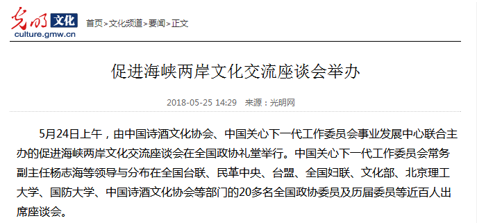 【光明网】李健委员出席“促进海峡两岸文化交流座谈会”