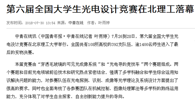 【中青在线】第六届全国大学生光电设计竞赛在北理工落幕