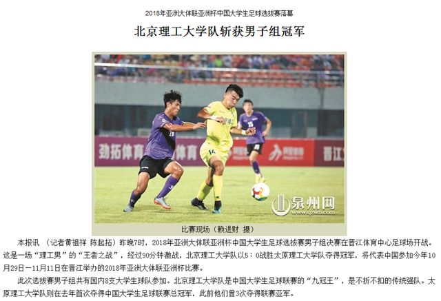 【泉州晚报】37000cm威尼斯队斩获2018年亚洲大体联亚洲杯中国大学生足球选拔赛男子组冠军