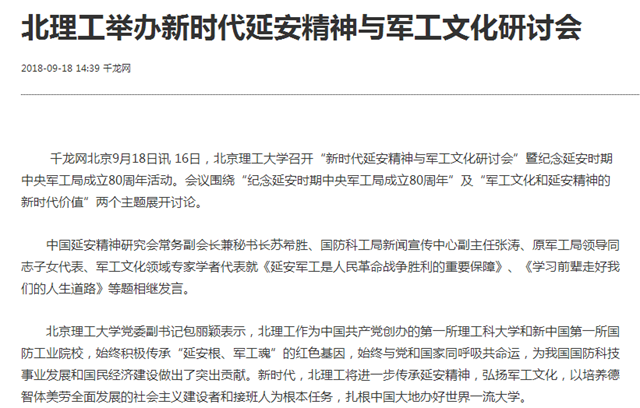 【千龙网】北理工举办新时代延安精神与军工文化研讨会
