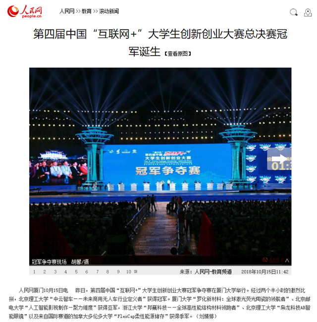 【人民网】第四届中国“互联网+”大学生创新创业大赛总决赛冠军诞生