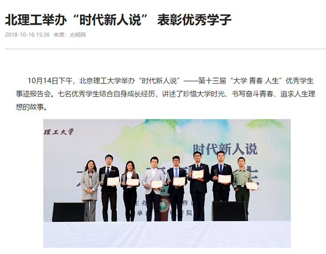 原文标题:北理工举办“时代新人说” 表彰优秀学子