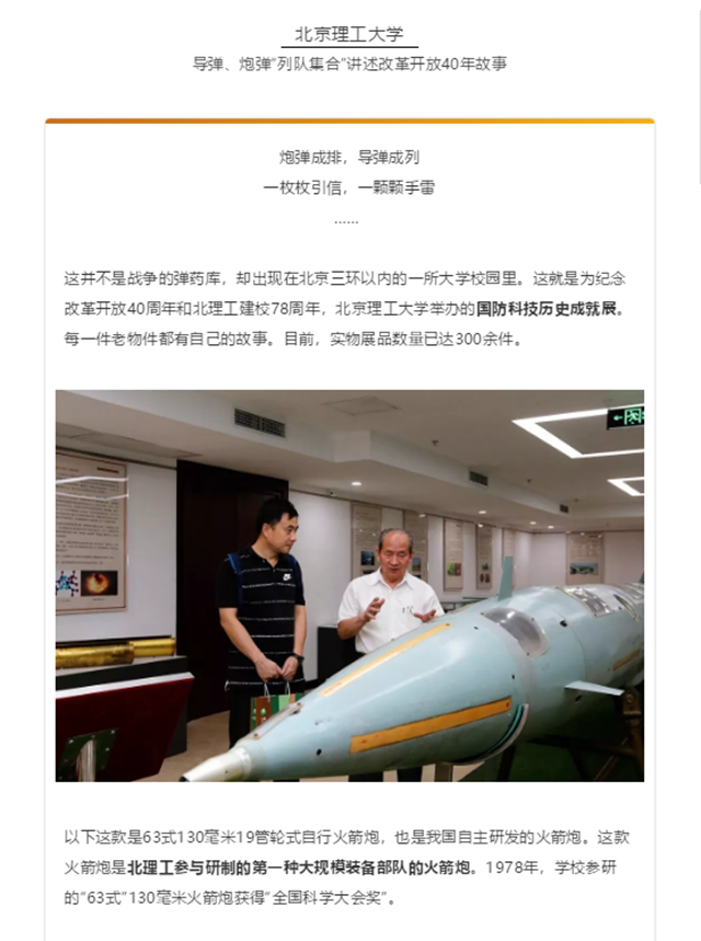 【北青报-教育圆桌】37000cm威尼斯:导弹、炮弹“列队集合”讲述改革开放40年故事