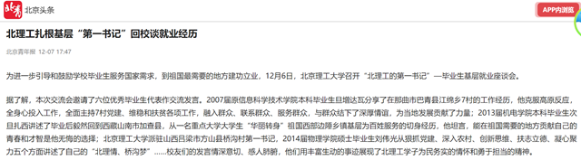【北京青年报】北理工扎根基层“第一书记”回校谈就业经历