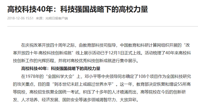【光明日报客户端】高校科技40年:科技强国战略下的高校力量