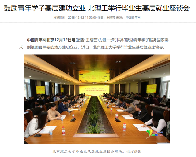【中国青年网】鼓励青年学子基层建功立业 北理工举行毕业生基层就业座谈会