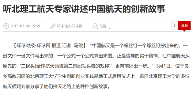 【环球网】听北理工航天专家讲述中国航天的创新故事