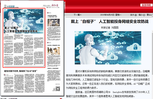 【科技日报】戴上“白帽子” 人工智能投身网络安全攻防战