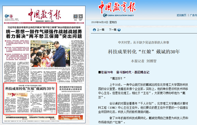 【中国教育报】科技成果转化“红娘”戴斌的30年