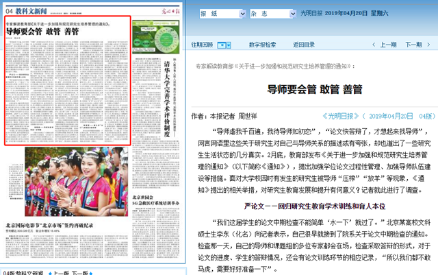 【光明日报】导师要会管 敢管 善管