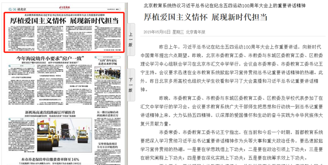 【北京青年报】厚植爱国主义情怀 展现新时代担当