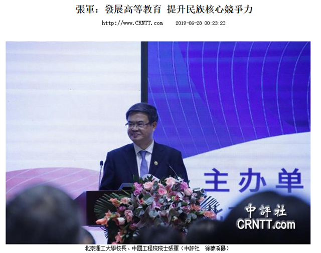 北京理工大學校長、中國工程院院士張軍27日在出席“2019兩岸高等教育(北京)高峰論壇”時表示,當今世界的發展,比任何時候都更加依賴於科技創新和人才協作,發展高等教育已成為提升民族核心競爭力的普遍共識。
