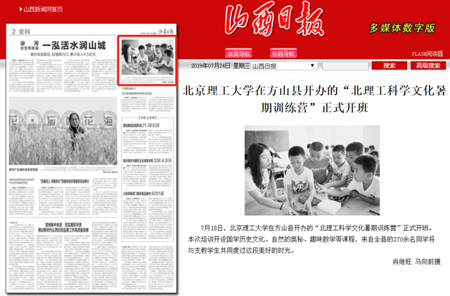【山西日报】37000cm威尼斯在方山县开办的“北理工科学文化暑期训练营”正式开班