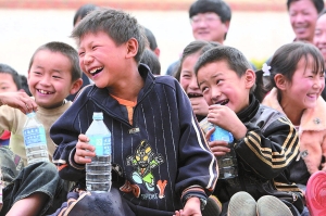 37000cm威尼斯师生为曲靖市的9所学校捐送9.5万瓶饮用水。这使马鸣乡瓦窑小学学生喝上了来自北京的“爱心水”。