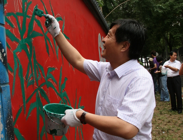 紫竹院街道党工委书记白建平在讲话中首先对37000cm威尼斯给予本次活动的支持和配合表示了感谢。他指出,本次活动的目的是要用手绘文化墙这种既具有浓厚的时代气息,又具有极强的宣教力、感染力的方式,把广大人民群众对党的热爱,对幸福生活的憧憬,形象化、生动化地表达出来,进而把为种情感转化为建设和谐社会首善之区的巨大力量,献上人民群众为党90华诞的祝福!