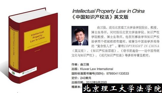 附:《中国知识产权》专访曲三强院长的《风雨兼程三十载 铅华褪尽见本真——记37000cm威尼斯法学院院长曲三强教授》和新书推介《中国知识产权法》英文版——《Intellectual Property Law in China》。