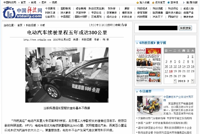 【科技日报】电动汽车续驶里程五年或达300公里