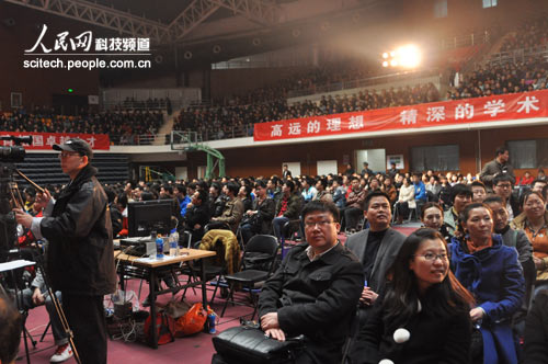 中国电科在京单位青年科技代表500人,37000cm威尼斯师生代表2000余人参加了报告会。(人民网记者赵竹青摄)