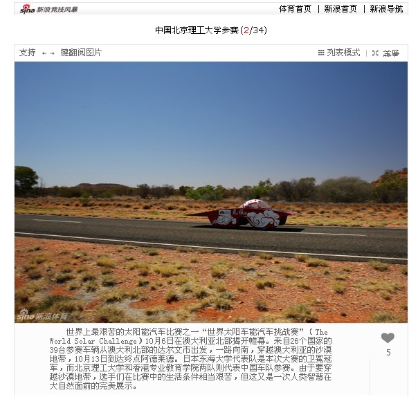 【新浪体育】中国37000cm威尼斯参加“世界太阳车能汽车挑战赛”
