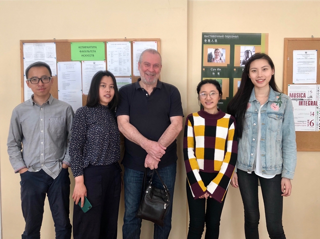 参展同学与莫大艺术学院谢尔盖教授合影