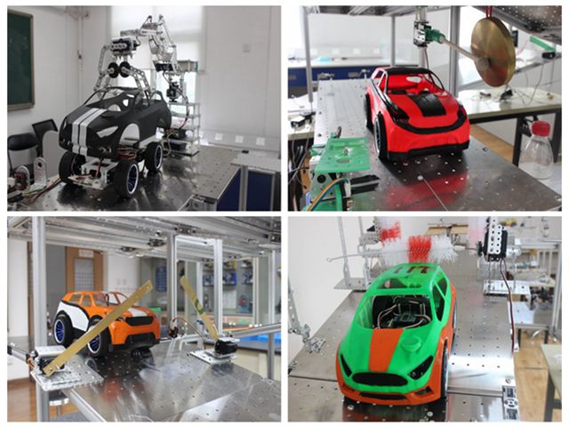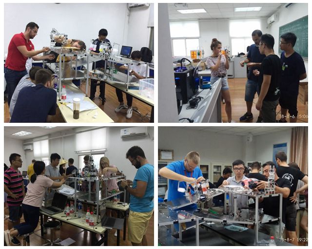 实践活动分别在8月4日、6日、7日及15日进行,围绕“智能小车梦工场”主题,针对汽车装配生产线涉及到车壳装配、自动洗车、定时关闸、转向性能检测等环节,设置不同难易度的六大主题任务;将中外学生分成10大组,每组12人,中外学生通过小组讨论、方案设计、程序编写、机构设计等多个环节安排完成任务。