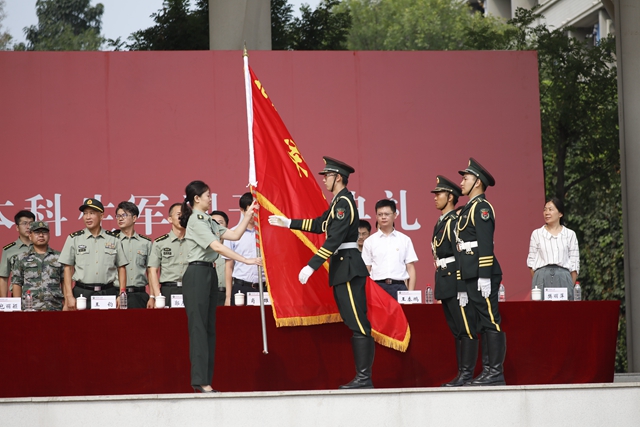 包丽颖代表学校党委向航天工程大学全体承训教官表示感谢,并对参训学员提了三点希望:一是希望同学们能苦学军事本领,传承报党报国初心,让美好青春洋溢家国梦想;二是希望同学们磨炼意志品质,勇于面对困难与挑战,勇扛责任担当;三是希望同学们养成良好作风,培养健康兴趣爱好,在博采众长中健康快乐成长。包丽颖强调全体学员要以军训为契机,立鸿鹄志、修精工学术、寻创新之道、担复兴大任,以拳拳爱国心、殷殷报国志,展现当代大学生的青春风采。随后,包丽颖向军训旅授旗,军训旅旅长张智强接旗。