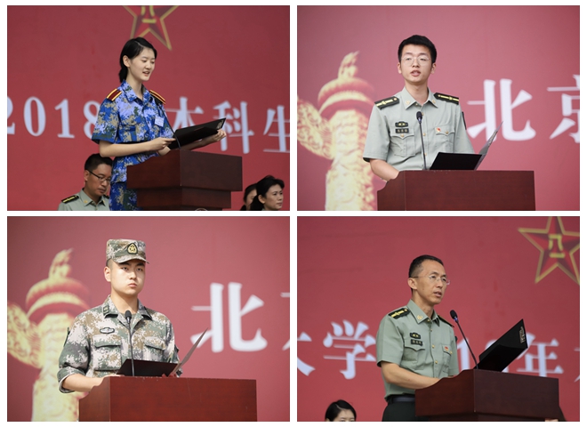 27连学员高斯晗代表全体参训学员发言,将秉承历年军训的优良传统,发扬吃苦耐劳、坚持不懈的拼搏精神,以饱满的热情和坚韧的意志圆满完成军训任务,书写胸怀壮志、明德精工、创新包容、时代担当的北理工学子青春故事。14连指导员张郑鸿在发言中号召全体带队干部,以身作则、积极工作,用追求极致的态度来面对军训生活,帮助学生成长,争做优秀的思想政治工作干部,努力成为中华民族“梦之队”的筑梦人。航天工程大学士官学校冀晨曦代表承训教官郑重表态,将严格遵守军训的有关要求,认真履行教官职责,耐心指导、科学施训,全心全力投入,以良好的军人形象,过硬的军事素质,高标准严要求完成好教官工作。学生工作处处长郭彦懿代表军训旅介绍了军事技能训练期间各项工作安排。
