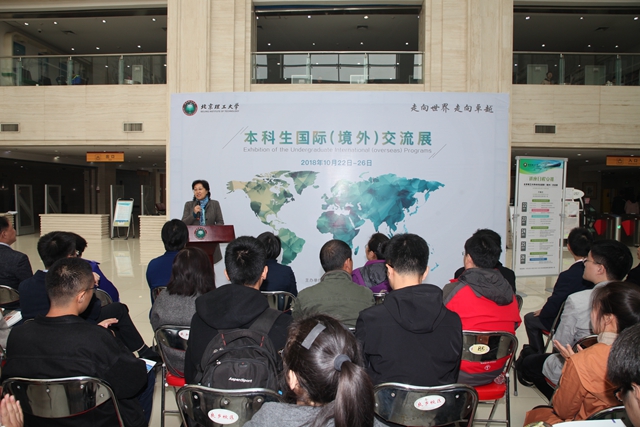 金秋十月,丹桂飘香。2018年10月22日,本科生国际(境外)交流展在良乡校区徐特立图书馆一层大厅开幕,副校长王晓锋,党委宣传部、教务部、良乡校区管理处、国际交流合作处、校团委、图书馆、各学院等相关领导和老师,以及有意愿参加国际交流项目的学生参加了开幕式。开幕式由教务部部长栗苹主持。