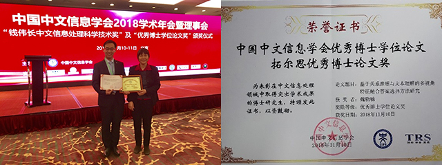 北理工语言智能与社会计算团队2018年斩获两项一级学会 “优秀博士学位论文奖”