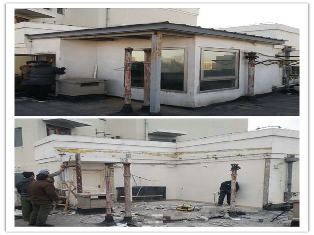 经过前期安全排查,12月20日上午校居委会、保卫部、物业管理与后勤服务公司、校医院等部门工作人员齐聚家属区134单元高层楼顶露台,对居民在楼顶私搭的违建进行拆除。拆除现场分工明确,秩序良好。1小时后,占地约15平米,高度近2米,采用简易铝合金、彩钢板和玻璃结构的违建“阳光房”拆除完毕。