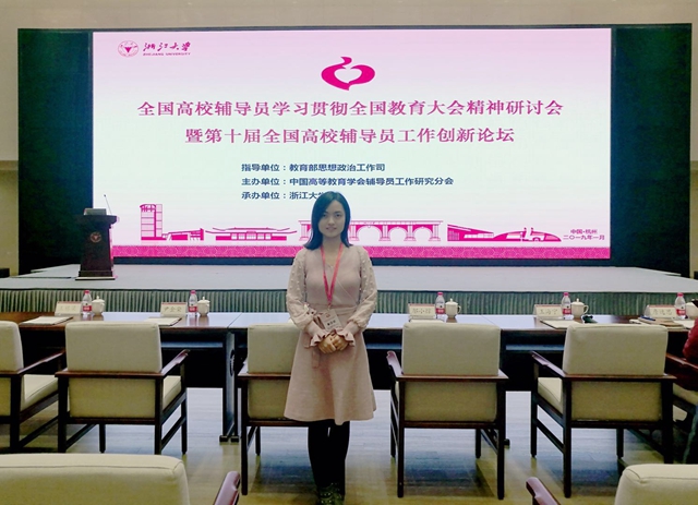 2019年1月4日至5日,全国高校辅导员学习贯彻全国教育大会精神研讨会暨第十届全国高校辅导员工作创新论坛在浙江大学举办,我校数学与统计学院辅导员杨青萌作为优秀辅导员代表受邀参会。