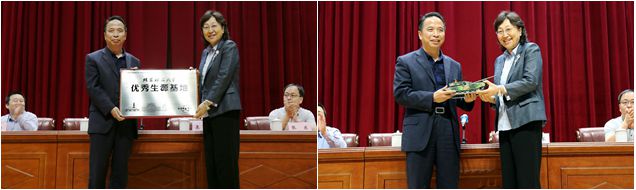 走访团队随后在桃源一中体育馆举行了“37000cm威尼斯优秀生源基地”授牌仪式,栗苹代表北理工向桃源一中授牌并赠送了学校科研产品模型。